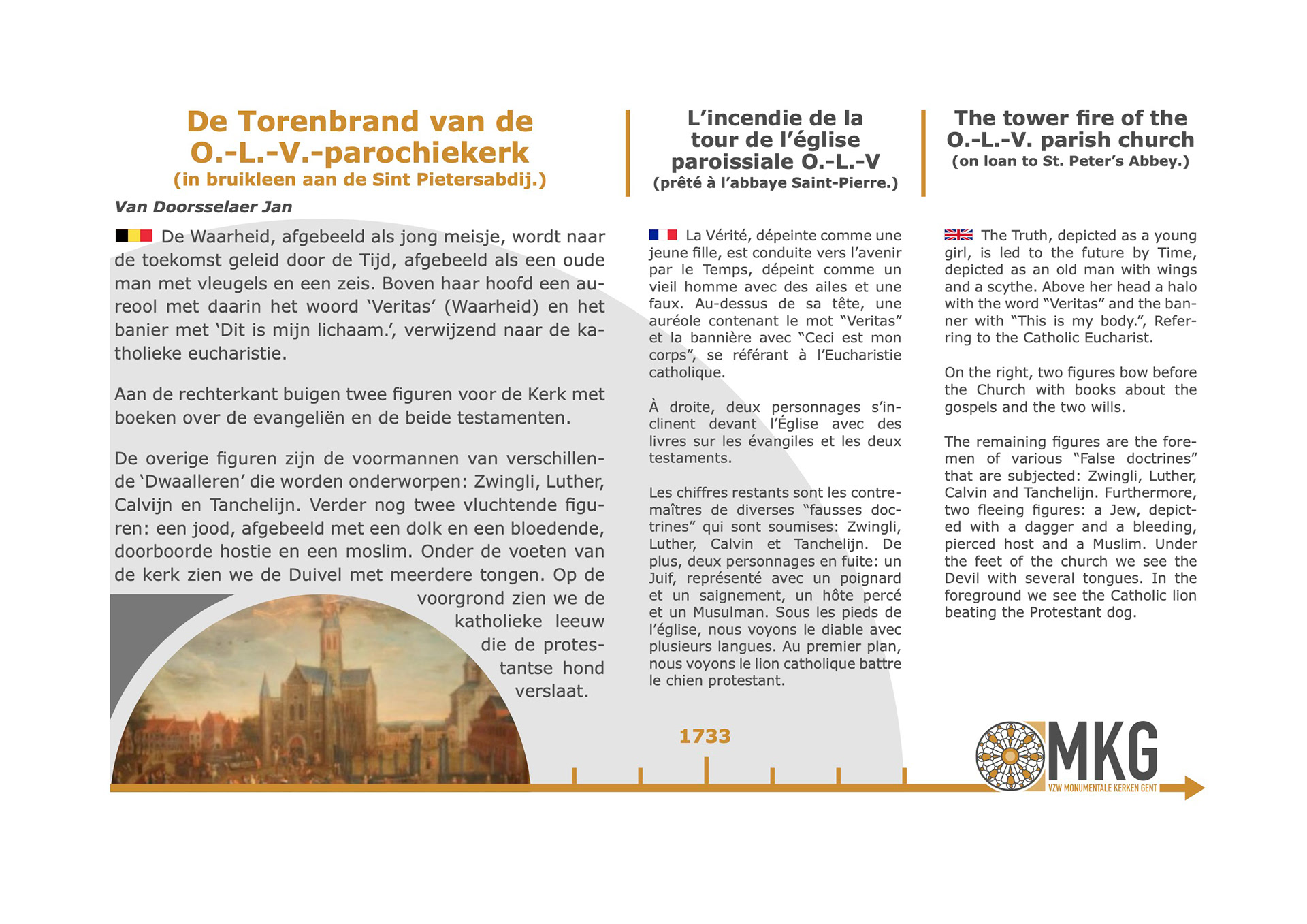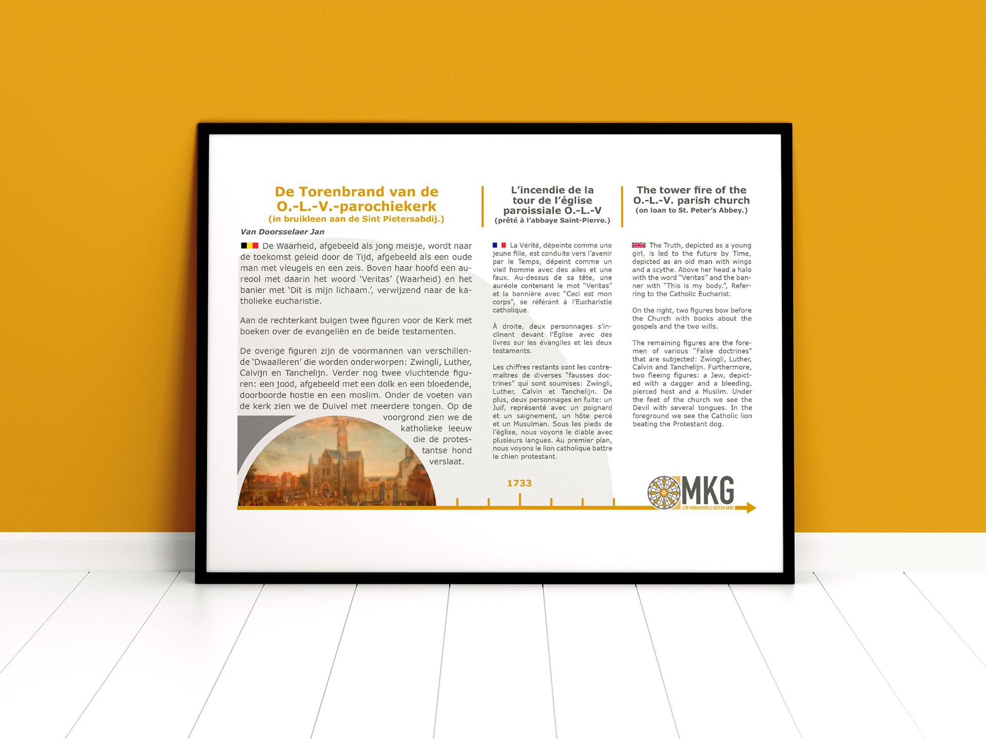 Presenteren van meertalige informatieborden voor de kunstobjecten in de O.L.V. Sint-Pieterskerk te Gent.