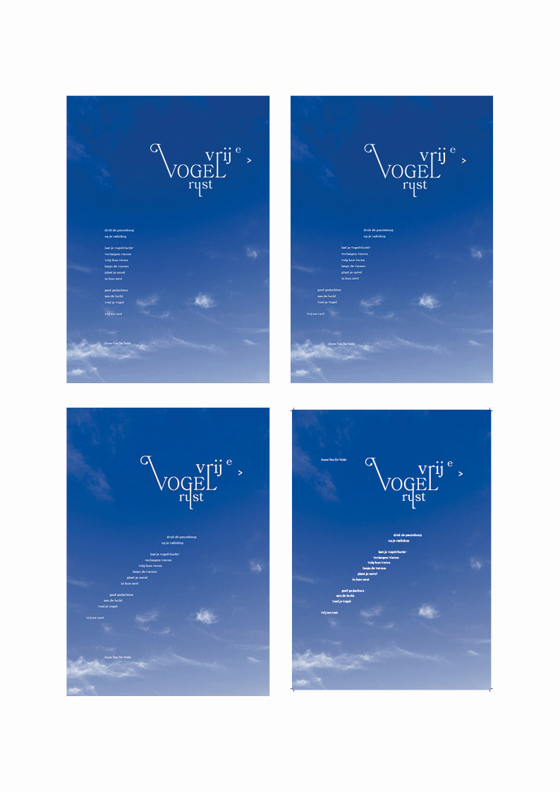 Visualiseer een opgegeven gedicht door enkel gebruik te maken van typografische elementen. Maak in de poster gebruik van maximaal 2 steunkleuren.
